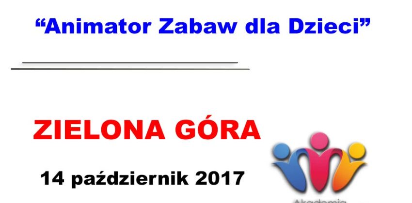 Akademia Animatora, której właścicielem jest Korporacja.NET Sp. z o.o. z siedzibą w Warszawie zaprasza na Innowacyjny Szkolenie Animatora Zielona Góra, który rozpocznie się 14.10.2017. Udział w Kursie Animator Zabaw dla Dzieci Zielona Góra gwarantuje dozę rzetelnej wiedzy z branży animacyjnej, cały dzień wspaniałej praktyki pod opieką Doświadczonych Trenerów, wydany w języku polskim i angielskim certyfikat i serdeczną atmosferę podczas Szkolenia Animatora.